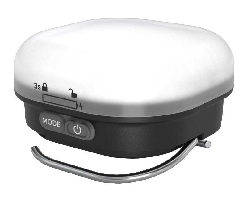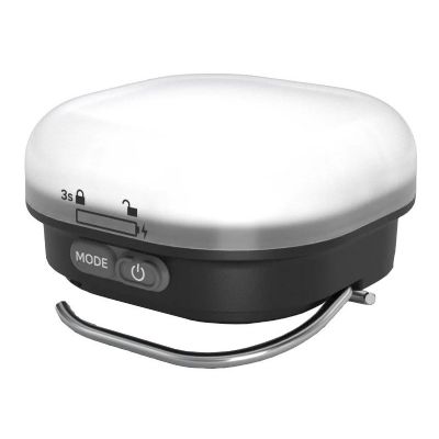 Häng upp lampan i tältet med de dubbla krokarna eller använd en av krokarna för att luta den på bordet eller marken. Växla mellan två 360°-ljuslägen: kallt vitt arbetsljus eller trivsamt och varmt lägereldsken.