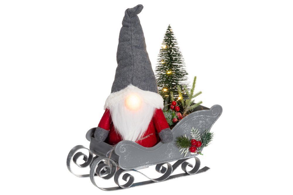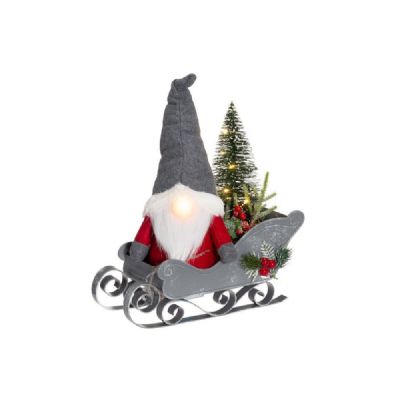 Mysig Alv och släde med LED-ljus. Drivs med 2 st AA 1,2V batteri (ingår EJ). Timer 6 timmar på 18 timmar av.